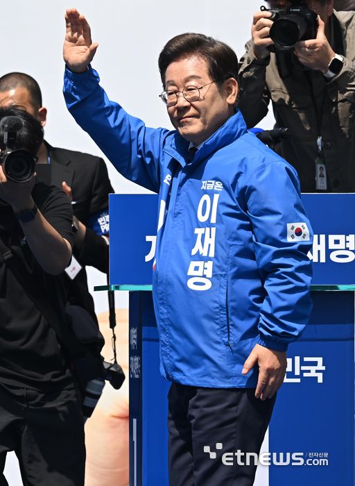 이재명 더불어민주당 대통령 선거 후보가 제21대 대통령선거 공식 선거운동 첫 날인 12일 서울 청계광장에서 열린 '빛의 혁명' 광화문 유세에서 연설을 마친 후 유세차량에서 이동하고 있다. 이동근기자 foto@etnews.com [Copyright © 전자신문. 무단전재-재배포금지]