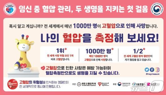 이에 올해는 여성, 특히 임신부의 심혈관 건강을 중점적으로 관리하고 임신 중 혈압 관리의 중요성을 널리 알리고자 임신부를 중점 홍보 대상으로 설정해 '임신 중 혈압 관리, 두 생명을 지키는 첫걸음'이라는 슬로건 아래 혈압측정 및 건강상담을 제공하는 현장 캠페인을 진행한다.