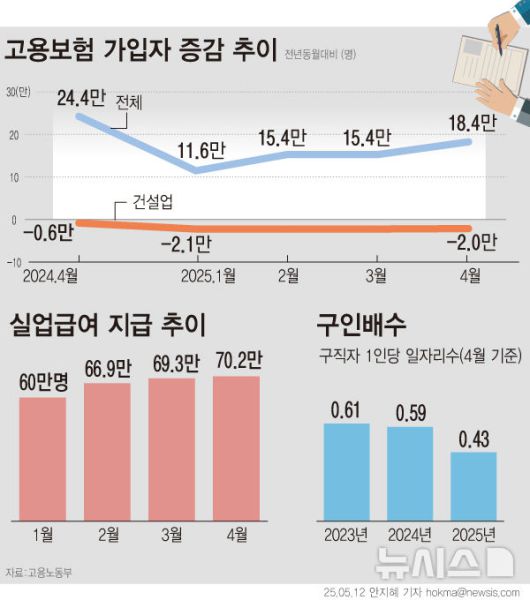 구인배수는 4월 기준 2022년 0.76, 2023년 0.61, 지난해 0.59 등으로 감소세를 보이고 있다.
