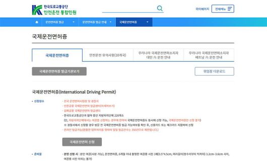 국제운전면허증 비대면 발급은 한국도로교통공단의 ‘안전운전 통합민원’ 홈페이지에서 진행합니다. 민원 페이지에서는 운전면허증 1종 보통 적성검사 및 2종 면허증 갱신, 면허증 재발급, 7년 무사고 1종 보통면허 발급은 물론 고령자를 위한 교통안전 교육, 어린이 통학버스용 안전교육, 운전면허 시험장 대기 및 교육장 안내, 자격시험 안내, 안전시설 검사 등 다양한 운전 관련 민원을 처리합니다.