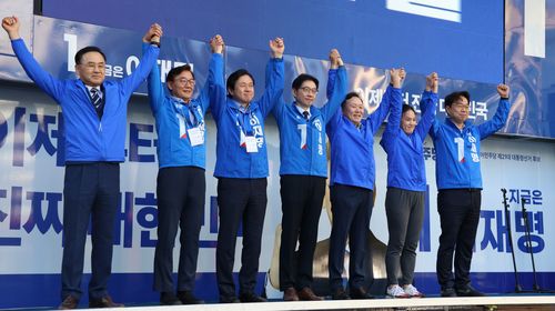 (부산=연합뉴스) 오수희 기자 = 제21대 대통령 선거 공식 선거운동이 시작된 12일 부산에서도 더불어민주당과 국민의힘이 출정식을 갖고 대선 승리를 결의했다.