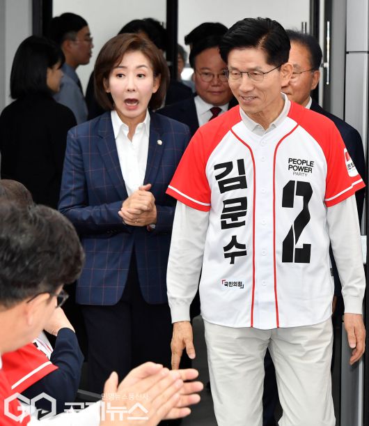 (서울=국제뉴스) 김문수 국민의힘 대선 후보가 12일 오전 서울 영등포구 여의도 국민의힘 중앙당사에서 열린 중앙선대위 임명장 수여식에 참석하고 있다./사진=이용우 기자