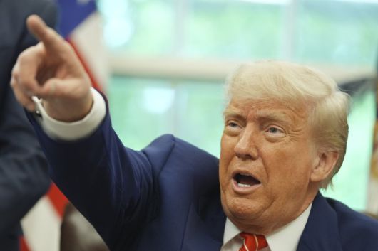 [워싱턴=AP/뉴시스] 사진은 도널드 트럼프 미국 대통령이 지난 8일(현지 시간) 백악관 집무실에서 영국과의 무역합의를 발표하고 있는 모습. 2025.05.09. /사진=뉴시스 |