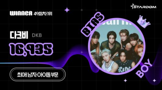 다크비는 5월 둘째주(집계기간 5월 5일~5월 11일) 스타덤 '최애 아이돌' 남자부문 주간랭킹에서 정상을 차지했다. 4월 둘째주 정상에 오른 후 내리 5주 연속 1위를 지키고 있다.