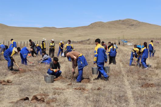 KT&G가 몽골 사막화 문제 해결을 위해 아르갈란트에 ‘상상의 숲’을 조성한다. 사진은 지난 10일 KT&G복지재단 관계자들과 참가자들이 ‘상상의 숲’ 식재 활동을 진행하고 있다. |