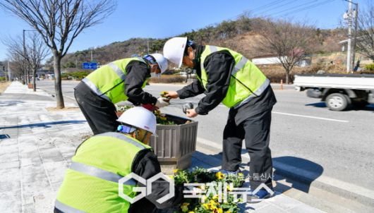 영주시, 하반기 공공일자리사업 참여자 55명 모집(공공일자리사업 참여자들이 꽃길조성을 하고 있다) |
