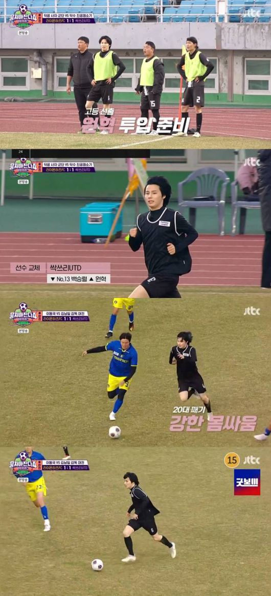 특히 원혁은 상대 팀의 핵심 선수 중 한 명인 이용우를 저지하며 뜨거워진 분위기를 더욱 달아오르게 했다. 그의 모습에 싹쓰리UTD 감독 김남일 역시 흐뭇한 미소를 지으며 만족감을 드러냈다.
