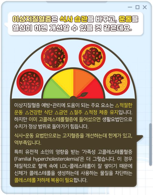 Q. 이상지질혈증은 식사 습관을 바꾸고, 운동을 열심히 하면 개선할 수 있을 것 같은데요.