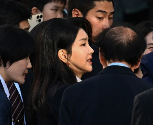 김건희 여사가 지난달 11일 서울 서초구 아크로비스타 사저로 향하고 있다. 사진공동취재단 |