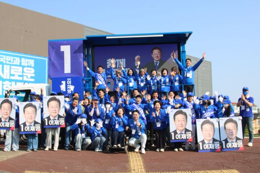 제21대 대선 민주당 제주도당선거대책위원회는 이날 오전 제주시 옛 마리나호텔 사거리에서 대규모 출정식을 갖고 진짜 대한민국을 열기 위해 이재명 후보의 압도적인 승리가 절실하다고 호소했다..