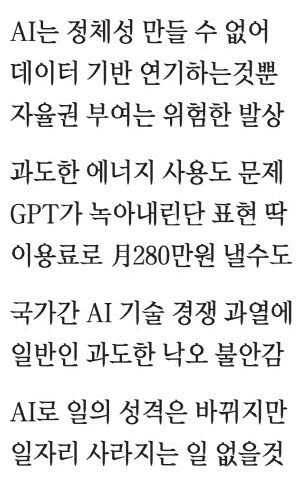 지브리풍 이미지 만들기 열풍으로 "GPT가 녹아내린다"고 토로한 샘 올트먼 오픈AI 최고경영자(CEO)의 말처럼, 과도한 에너지를 사용하는 지금의 AI 기술 발전은 지속가능하지 않다는 점도 지적했다. 이 교수는 "사람의 뇌가 지금의 AI처럼 진화하지 않은 것은 AI처럼 에너지를 사용하는 방식으로는 생존이 불가능하기 때문"이라며 "빅테크가 AI 개발과 운영에 소모되는 전력을 서비스 사용료로 충당하려면 유료 구독자의 경우 지금처럼 한 달에 20달러(약 2만8000원)가 아니라 2000달러(약 280만원)는 내야 할 것"이라고 강조했다.