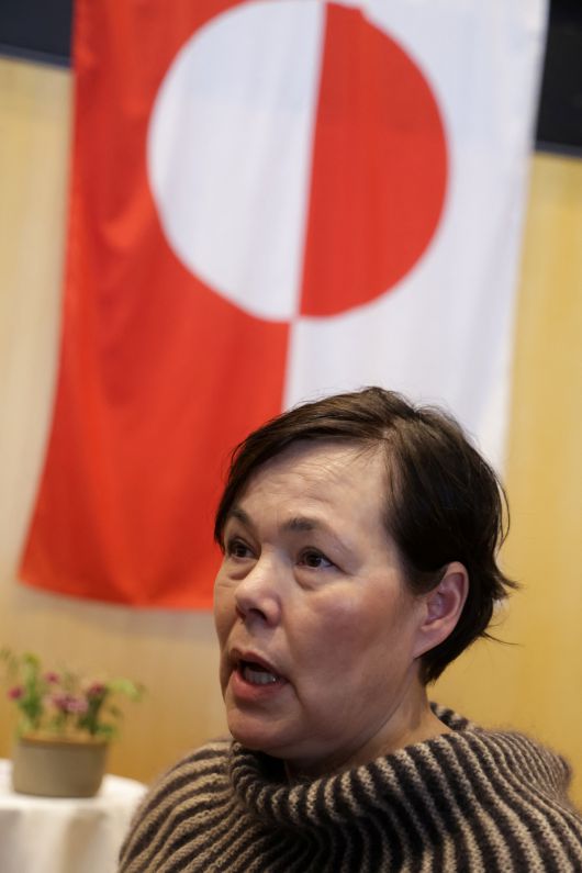 비비안 모츠펠트 당시 전진당(시우무트당) 대표가 3월 28일 그린란드 누크에서 언론과 대화하고 있다. 로이터연합뉴스 |