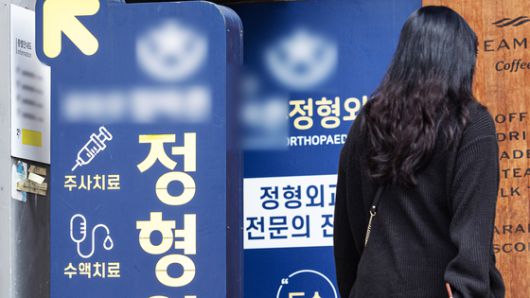 한 시민이 정형외과의원의 홍보물을 지나고 있다. 뉴스1 |