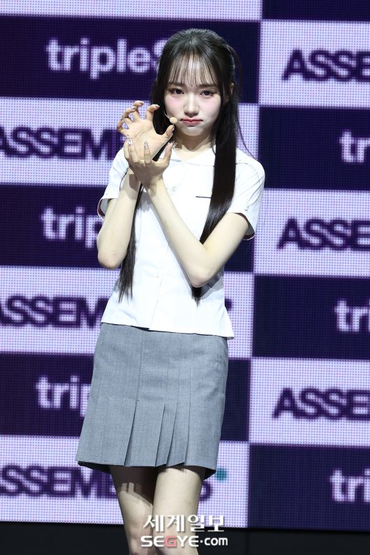 그룹 트리플에스(tripleS) 박시온이 12일 오후 서울 용산구 한남동 블루스쿼어에서 열린 새 앨범 'ASSEMBLE25' 발매 기념 쇼케이스에 참석해 포즈를 취하고 있다. 한윤종 기자 hyj0709@segye.com ⓒ 세상을 보는 눈, 세계일보