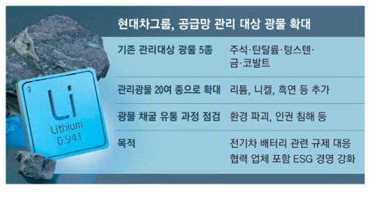 [단독] 현대차, 공급망 관리 광물 20개로 늘린다