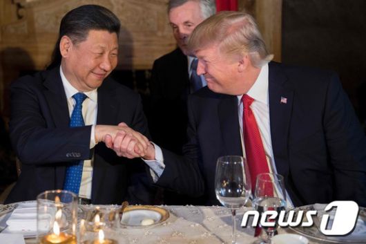 2017년 4월 미국을 방문한 시진핑 중국 국가주석이 도널드 트럼프 미국 대통령과 플로리다 주 팜비치의 마러라고 별장에서 웃으며 악수를 하고 있다. ⓒ AFP=뉴스1 |