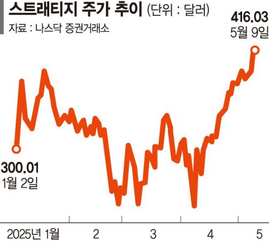 유상증자와 전환사채 발행 등을 통해 비트코인을 꾸준히 매수한 스트래티지는 주식시장에서의 몸값도 함께 오르고 있다. 인베스팅닷컴에 따르면 올 들어 스트레티지 주가는 43% 넘게 급등했다.