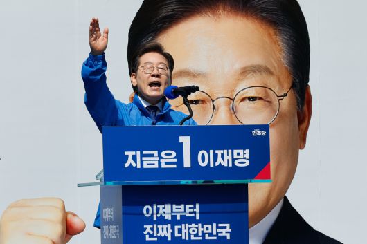 이재명 더불어민주당 이재명 대선 후보가 6·3 대통령선거 공식 선거운동 첫날인 12일 서울 광화문 청계광장에서 열린 중앙선대위 출정식 및 첫 유세에서 시민들에게 지지를 호소하고 있다. 연합뉴스 |