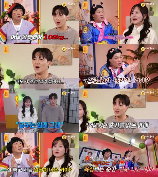 여기에 이수근은 남편에게 밸런스 게임으로 ‘102kg 시절로 돌아가 날 챙기는 아내 vs 공주가 된 57kg 아내’ 중에 선택하라고 제안하며 “지금 중요한건 노력을 인정하고, 변한 모습도 이해해야 된다”라며 현실적인 조언을 전한다.