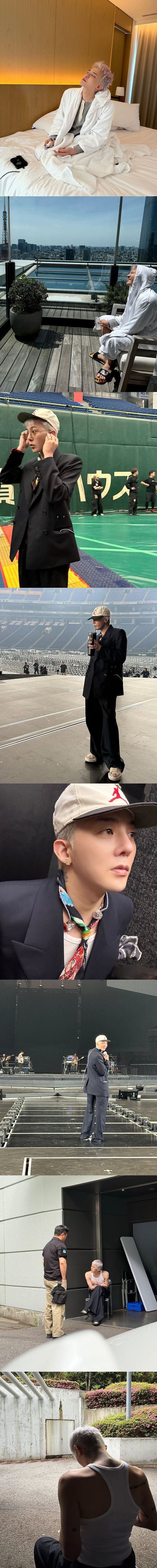 공개된 사진은 투어중인 지드래곤의 다양한 모습들. 호텔방에서 찍은 사진과 무대를 준비하면서 찍은 것으로 보이는 지드래곤의 자연스러운 모습들이 담겨있다. 특히 민소매를 입은 지드래곤의 떡 벌어진 어깨와 등 근육에 보는 이들의 시선이 집중됐다.