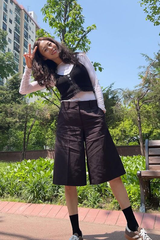 공개된 사진 속에서 장신영은 검은색 뷔스티에 상의에 반바지를 입은 편안한 모습. 장신영은 공원에서 산책을 즐기며 활짝 웃는 모습으로 시선을 사로 잡았다. 특히 더욱 예뻐진 장신영의 미모가 눈길을 끌었다.
