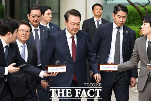 [더팩트ㅣ남용희 기자] 12.3 비상계엄 사태와 관련해 내란 우두머리 혐의 등으로 기소된 윤석열 전 대통령이 12일 오후 서울 서초동 서울중앙지법에서 열린 3차 공판을 마친 뒤 법원을 나서고 있다.