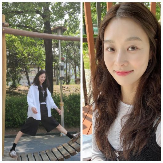 공원 벤치에 앉아 밝게 웃거나, 놀이기구 위에서 균형을 잡는 익살스러운 포즈까지 장신영 특유의 친근하고 건강한 에너지가 고스란히 담겼다.