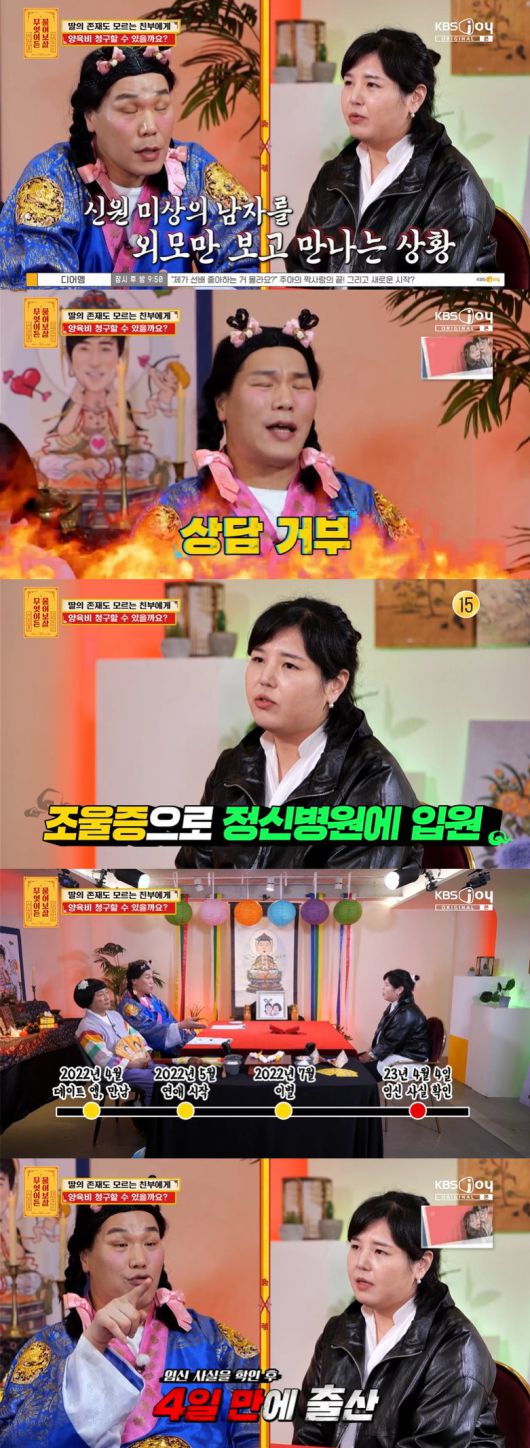 이후 조울증으로 정신병원에 입원하게 된 사연자는 "병원에서 임신 같다고 하더라"며 출산 마지막 달까지 임신 사실을 몰라 임신 사실 확인 후 4일 만에 출산했음을 밝혔다.