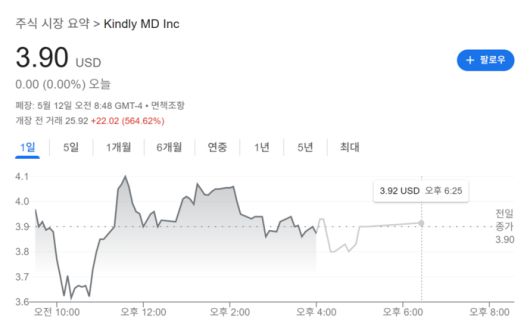 이같은 소식에 카인들리MD의 주식은 개장 전 거래에서 564%나 급등했다.