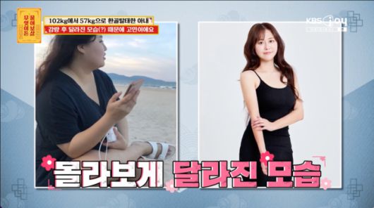 사연자 남편은 “아내가 원래 102kg였다. 현모양처처럼 정말 잘해줬다. 45kg을 빼고나서 태도가 완전 달라졌다”라고 고민을 전했다. 45kg을 뺀 아내는 현재 몸무게는 57kg이라고 밝혔다. 살 빼고 건강도 좋아졌다고.