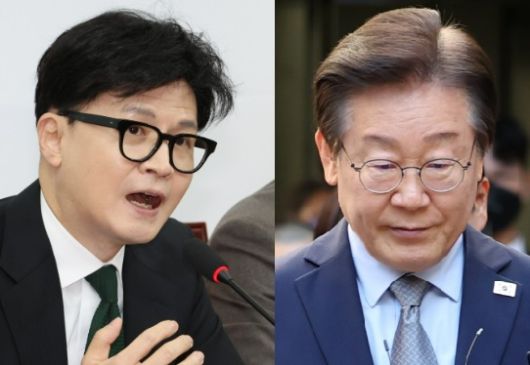 한동훈 전 국민의힘 대표(좌), 이재명 더불어민주당 대선 후보(우)[연합] |