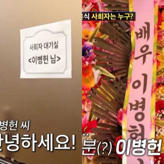 결혼식장에 도착한 이천수는 대기실 문에 붙은 ‘이병헌 사회자 대기실’이라는 표지에 깜짝 놀라며 기대감을 드러냈고, 실제로 화환에는 배우 이병헌·이민정 부부의 이름까지 적혀 있어 하객들의 기대는 더욱 커졌다.