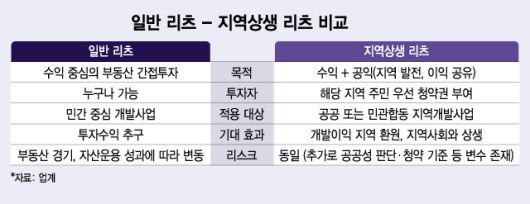 업계 관계자는 "지역상생 리츠는 개발 수익의 사회 환원을 제도화한다는 점에서 의미가 있다"며 "투자자 보호 장치와 함께 참여 방식이 명확히 설계돼야 제도로서 안착할 수 있다"고 말했다.
