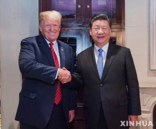 【부에노스아이레스=신화/뉴시스】1일(현지시간) 아르헨티나 부에노스아이레스에서 도널드 트럼프 미국 대통령과 시진핑 중국 국가주석이 만찬 회동에서 악수하고 있다. 악화일로를 걷던 미중 무역갈등은 이날 회동을 통해 휴전으로 일단 봉합됐다. 2018.12.02 |