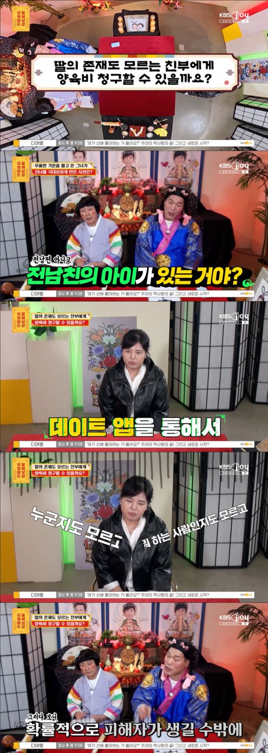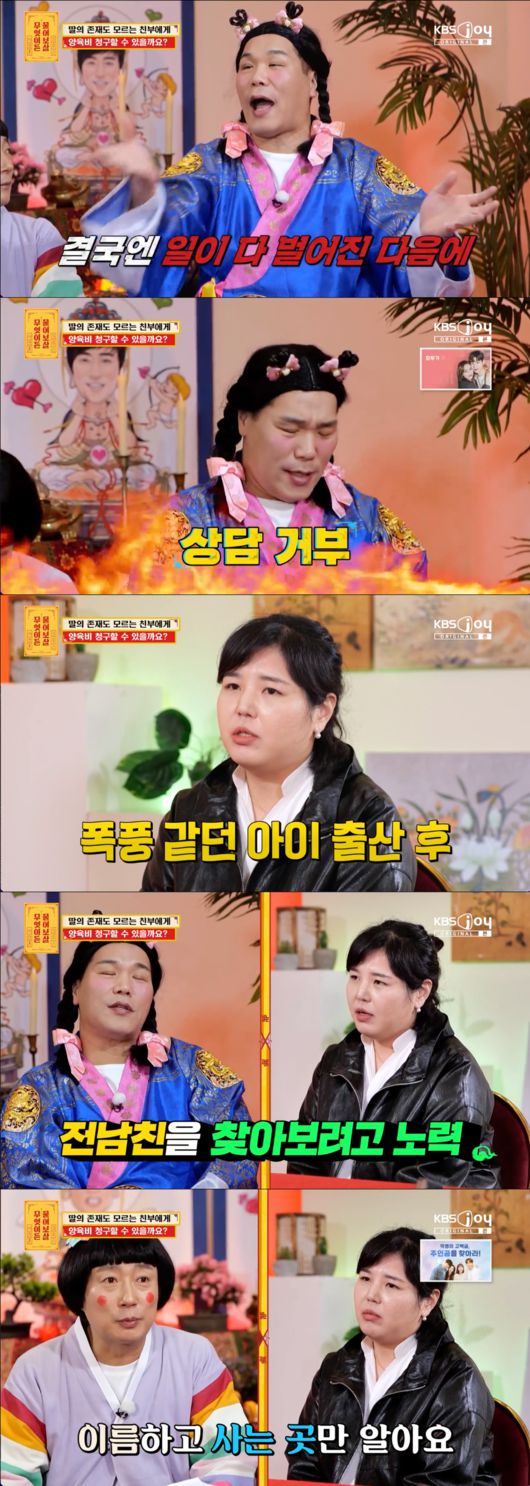 쇼핑몰을 하고 있는 35살인 사연자는 “제가 지금 전남친과 헤어졌는데 출산 사실을 알리지 않고 혼자 육아를 하고 있다. 점점 경제적으로 힘들어져서 양육비 청구가 가능할지 궁금하다”라고 고민을 털어놨다.