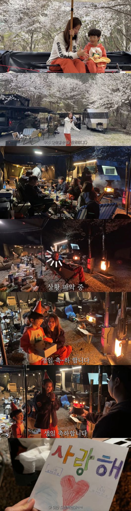 영상에서 이시영은 지인들과 함께 벚꽃 캠핑을 떠났다.