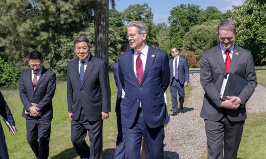 스위스 제네바에서 만난 미·중 협상단이 함께 산책하고 있다. 백악관 제공 |