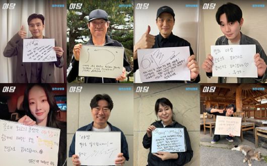 '야당' 배우들이 친필 감사 메시지를 전하고 있다. [사진=플러스엠엔터테인먼트] |