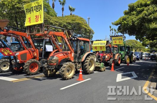 고경희 전국여성농민회총연합 제주도연합 사무처장은 “대통령 이름이 바뀐다고 농민의 삶이 달라지지 않았다”며 “농민은 윤석열이 탄핵된 세상에서 또다시 트랙터에 시동을 걸고 있다”고 강조했다. 이어 농산물 수입 중단, 무상급식 확대, 농산물 최저가격 보장 등 농민의 생존을 위한 요구사항을 각 정당 대선 후보들에게 전달했다.