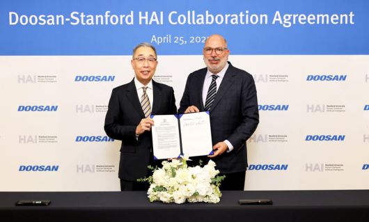 스탠포드 대학은 AI 분야에서 전세계 최고수준의 대학 중 하나로, 'AI를 통한 인간 삶의 개선'을 목표로 2019년 HAI를 설립했다. 두산은 산업재 기업 최초로 HAI와 산학협력을 맺었다. 양측은 피지컬 AI 협력연구와 인적교류를 통해 기술 협력과 지식 전수를 진행한다.