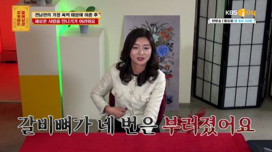 결혼 8~9년 차부터 남편이 좋지 않은 문화에 빠졌다고 설명한 사연자는 "남편에게 여러 번 집에 오라고 연락했다. 그 후 방에서 아이를 재우고 있었는데, 전남편이 갑자기 들어오더니 폭력을 휘둘렀다"라며 노는데 왜 자꾸 방해하냐는 이유인 것 같다고 했다. 또한 "그동안 얼굴은 맞진 않았지만, 갈비뼈가 4번은 부러졌다"라고 덧붙였다.