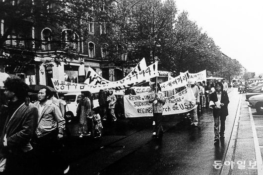 파독 광부, 간호사, 유학생 등 독일 교포 500명은 1980년 5월 30일 당시 서베를린 번화가인 쿠담에서 ‘투쟁하는 광주시민과 연대하는 데모와 학살성토대회’를 열고 시가행진을 벌였다. 5·18기념재단 제공. |