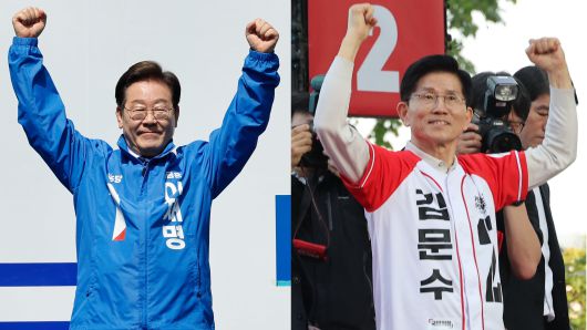 이재명 더불어민주당 대통령 후보(왼쪽), 김문수 국민의힘 후보가 제21대 대통령 선거 공식 선거운동 첫날인 12일 서울 중구 청계광장, 대구 서문시장에서 각각 지지를 호소하고 있다./뉴스1 |