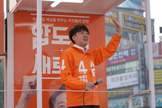 13일 이준석 개혁신당 대통령선거 후보가 대구 죽전네거리 유세 현장에서 지지를 호소하는 모습. [사진=개혁신당 공보국 제공] |