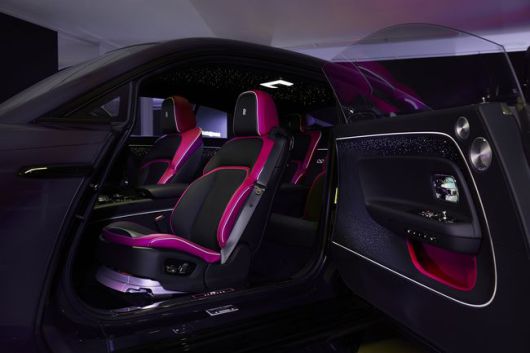 롤스로이스모터카는 서울 강남구 롤스로이스 서울 청담 쇼룸에서 열린 공개 행사에서 럭셔리 슈퍼 쿠페, 블랙 배지 스펙터의 대담한 개성을 강조한 차량을 선보였다. 외관은 짙은 보라색의 베이퍼 바이올렛(Vapour Violet)과 아이스드 블랙(Iced Black) 보닛이 조화를 이루며, 어둡게 마감된 판테온 그릴과 환희의 여신상 등 디테일 요소들과 함께 차량의 강렬한 존재감을 드러낸다. 실내는 블랙을 기본으로 피오니 핑크 색상 배색으로 마감하고, 아틱 화이트(Arctic White) 색상 시트 파이핑을 더해 블랙 배지 특유의 역동적이고 세련된 감각을 정교하게 표현했다.
