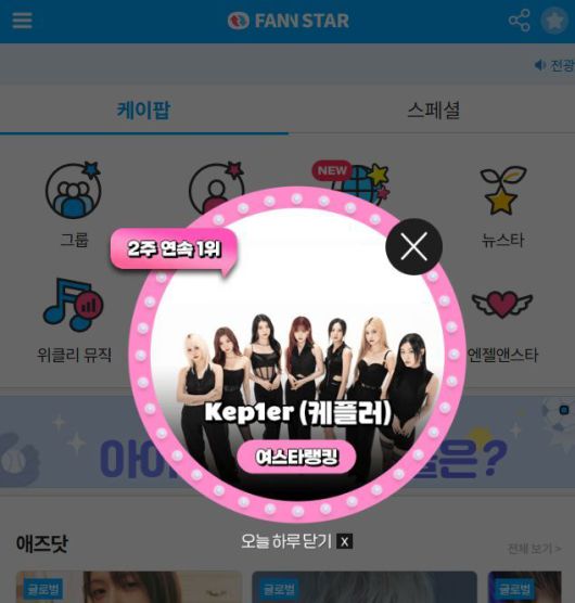 지난 12일 그룹 케플러가 '팬앤스타' 여자스타 랭킹 1위를 차지했다. /팬앤스타 |