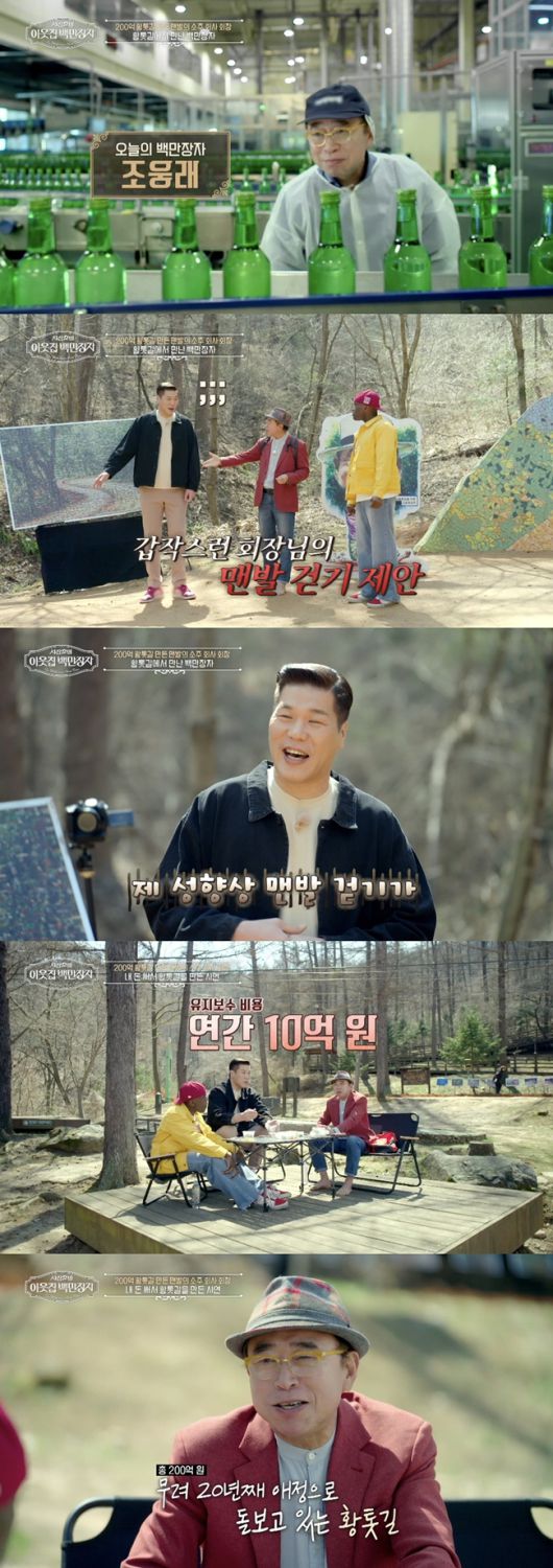 [스포츠조선닷컴 이우주 기자] '이웃집 백만장자'에 200억 원을 들여 황톳길을 만든 '괴짜' 소주 기업 회장이 등장한다.