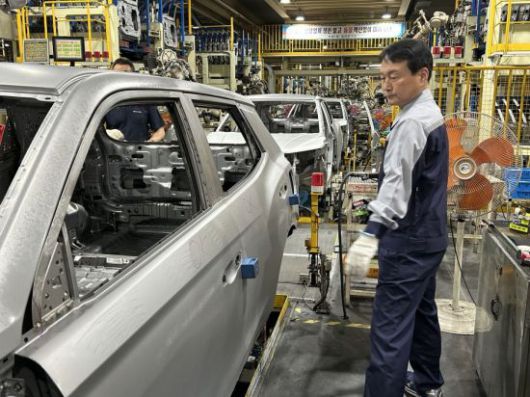 지난 2일 방문한 KG모빌리티(KGM) 평택 공장 차체 품질 라인에는 은백색 차체가 컨베이어 벨트를 타고 끊임없이 밀려왔다. 자동화 로봇이 정해진 위치에 차 문짝을 조립하지만 문과 문 사이에 조금씩 단차가 생긴다. 이 회사에서 근무하는 황주원(61)씨는 그 오차를 점검하고 다시 정교하게 맞추는 업무를 담당하고 있다.
