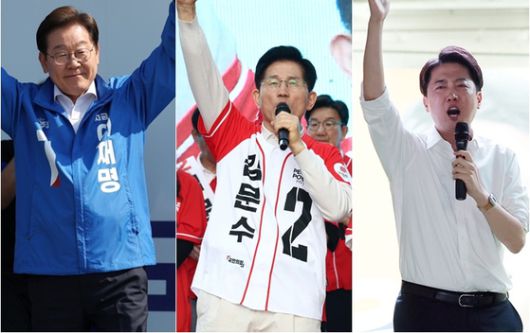 이재명 더불어민주당 대선 후보, 김문수 국민의힘 대선 후보, 이준석 개혁신당 대선 후보(왼쪽부터). 〈자료사진=연합뉴스〉 |