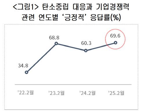 [이데일리 김소연 기자] 미국의 기후정책 후퇴 움직임에도 국내 기업의 70%는 탄소중립 대응이 기업 경쟁력에 도움이 된다고 판단했다. 미국 등 선진국이 잠시 주춤하고 있는 현재 오히려 한국이 기술격차를 줄일 수 있다고 봤다.